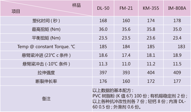 ■DL-50與國外同類(lèi)產(chǎn)品的塑化及機械性能的對比表: