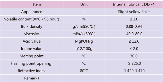 DL-74 為聚氯乙烯加工用外潤滑劑,特別適用于軟/硬PVC粒料,透明片材、板材、收縮膜,壓延膜的加工。它可使物料塑化時(shí)間延長(cháng),降低平衡扭矩,增強脫模效果,改善制品的表面光滑度。添加量一般為0.3-0.8份(透明),0.3-1.2(不透明),特殊情況下可適當增加